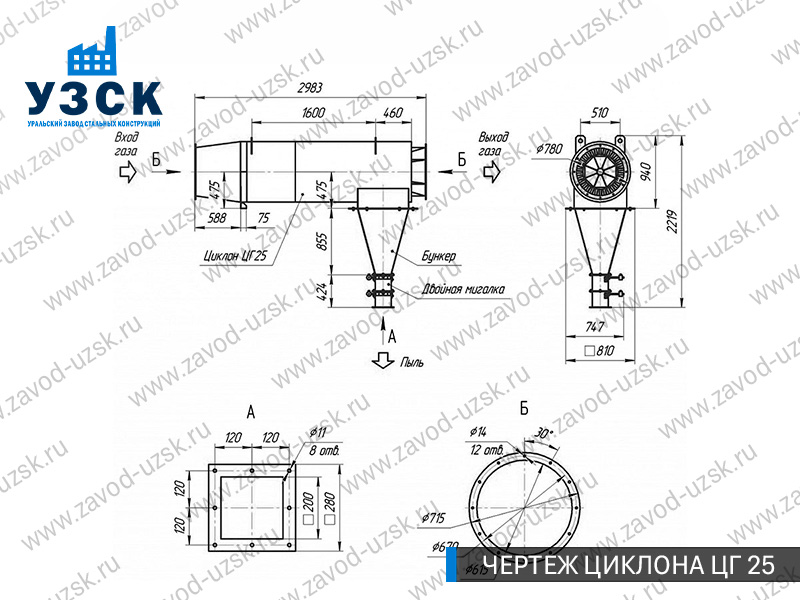 Монтаж циклона-искрогасителя ЦГ должен осуществляться непосредственно к горизонтальному вентиляционному каналу на входе в систему фильтрации и аспирации. Заказать изготовление по индивидуальному техзаданию или купить готовый циклон-искрогаситель ЦГ на заводе УЗСК в Новороссийске можно, оставив заявку прямо на сайте или позвонив по указанному телефону, уточнив все детали касательно продажи оборудования.