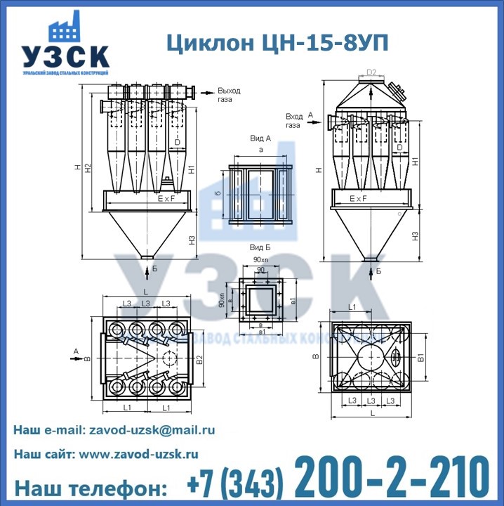 Завод «УЗСК» в Новороссийске предлагает большой выбор циклонов ЦН-15-500×8УП и прочих устройств, полностью укомплектованных и готовых к эксплуатации. Мы гарантируем соответствие оборудования всем требованиям ГОСТ и ТУ, износостойкость и высокую производительность предлагаемого оборудования. Уральский Завод Стальных Конструкций изготавливает и продает надежное, эффективное и производительное оборудование, имеющее длительную гарантию и большой эксплуатационный ресурс. Если требуется изготовить циклон нестандартных размеров, то такой вариант выполнения заказа тоже предусмотрен, так как предприятие имеет собственные производственные площади и надежных поставщиков. На все поставляемое или производимое оборудование имеются чертежи и прочая техническая документация. Заказать и купить циклоны или прочее оборудование высокого качества и по доступной цене можно через наш сайт или по указанному в разделе «Контакты» телефону.