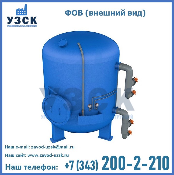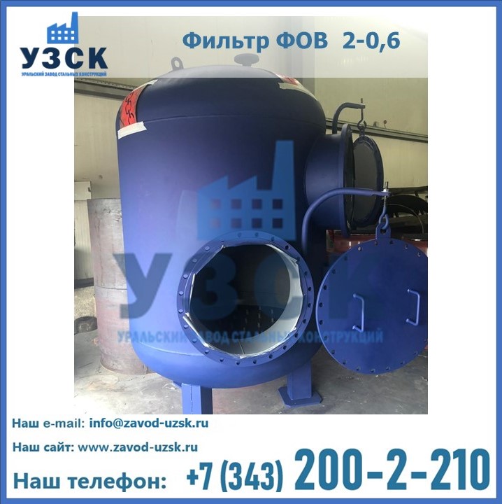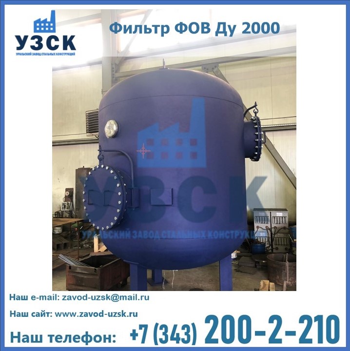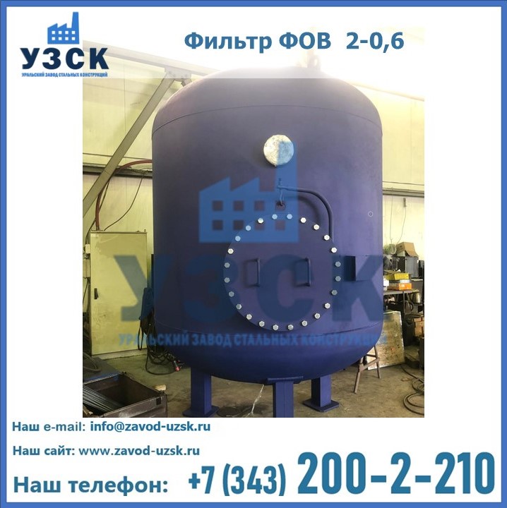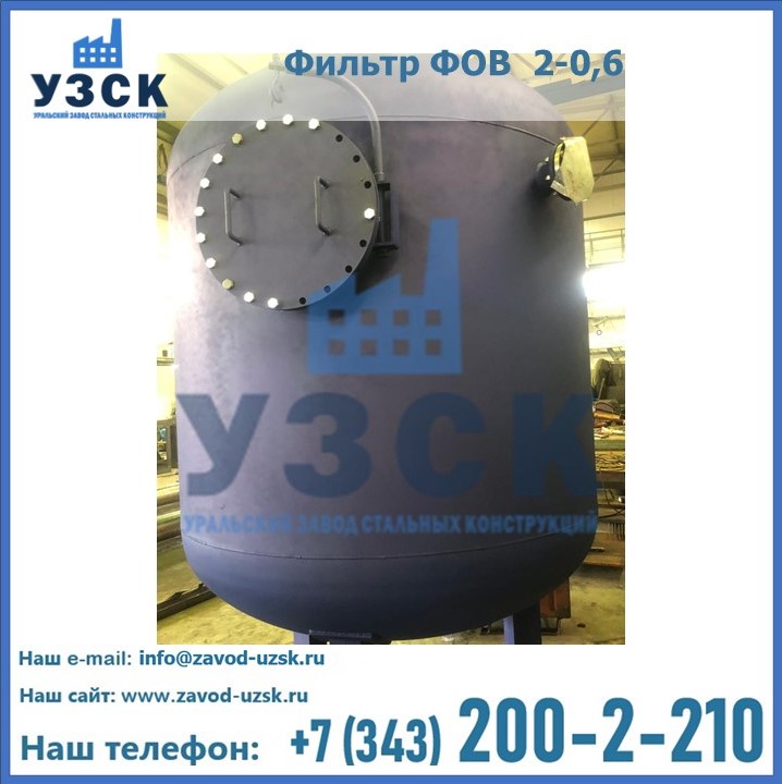 Удаление взвешенных веществ различного уровня дисперсности из рабочих жидкостей эффективно проводит фильтр осветлительный типа ФОВ (скорый или механический) — вертикально-цилиндрической формы установка, разработанная для систем водоподготовки различного класса. Оборудование представляет собой однокамерный агрегат для очистки воды рекомендованный для применения на станциях очистки стоков, в коммунальных котельных, на ТЭЦ, в промышленных отопительных системах и пр. Заказать производство ФОВ фильтров предлагает наш Уральский завод стальных конструкций в Новороссийске. У нас можно купить фильтрационное оборудование различного класса и типа, в том числе фильтры ФОВ из нержавеющей стали.