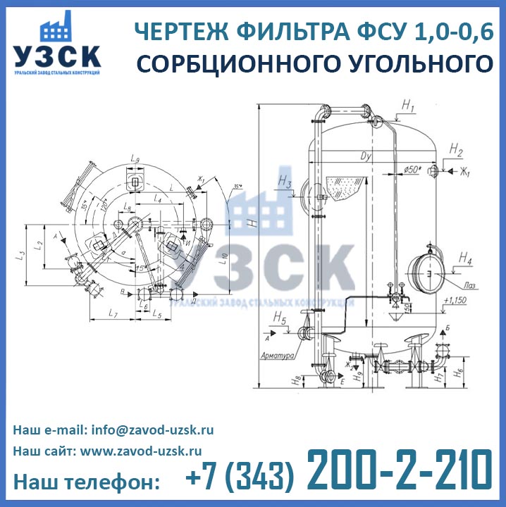 Наш завод (Уральский завод стальных конструкций) является производителем угольных фильтров, сам осуществляет изготовление и реализацию выпускаемой продукции. Приобретая фильтры ФСУ-1.0-0.6 в Новороссийске от производителя, Вы приобретаете оборудование без наценок всевозможных посредников, а также значительно экономите свое время. Фильтры ФСУ1.0-0.6 завода УЗСК – это гарантия качества, кратчайшие сроки изготовления и цена, которая Вам понравится.